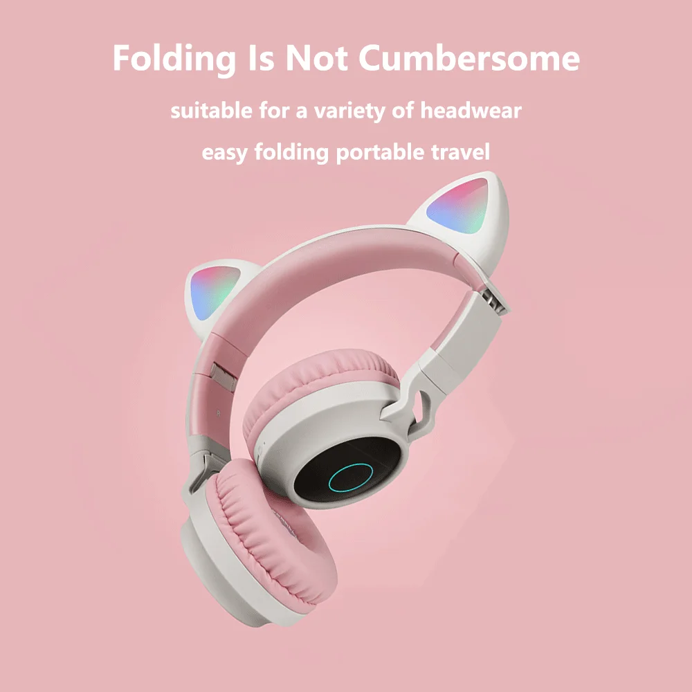 Cute Cat Wireless Headphone Bluetooth Headset Foldable Stereo Portable Earphone Support TF Card wit